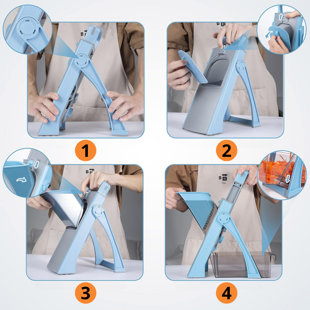 El cortador Cut Chef está diseñada para que la preparación de alimentos sea más rápida y eficaz. Basta con ajustar el grosor y deslizar las verduras o frutas por la afilada cuchilla para obtener cortes perfectos. Desde rodajas finas como el papel hasta cortes gruesos, lo hace todo sin esfuerzo. Esta increíble herramienta es versátil, fácil de limpiar y está hecha para durar, dándole la confianza para probar nuevas recetas y elevar su juego de cocina.